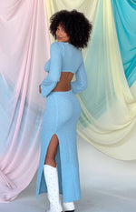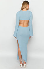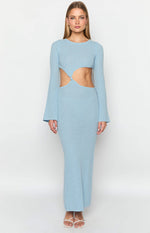Arya Blue Long Sleeve Knit Maxi Dress