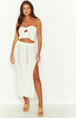 - Summer is calling in this stunning cream knit set! Perfect for lunch by the beach or dinner and drinks after a day in the ocean! Pair with the matching midi skirt, some gold jewellery and sandals, add a sleek hair look and you're ready to go.
