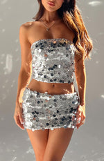 Be the life of the party with the silver sequin mini skirt! We love wearing this eye-catching style at concerts with a simple white tank top and black heels. Add matching silver jewellery to complete the look!