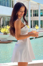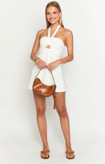 Our Mercutio White Mini dress is a showstopper! Featuring gathered and cut-out details at the bust, adjustable halter neck ties, and a removable strap, it offers endless styling possibilities. Pair it with sleek heels and a bold lip for a chic, head-turning look that works for any event!