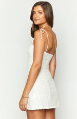 Elevate your party look with our Penny Lane White Sequin Mini Dress. With its mini length and sequin glitter outer, this dress is sure to turn heads. The fully lined slight stretch lining and adjustable tie thin straps ensure a comfortable fit. Dress up with heels and jewellery to complete the look.