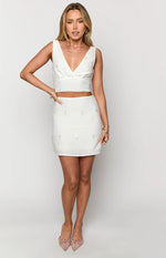 Scotlyn White Embellished Satin Mini Skirt