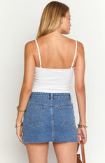 Siletto Mid Wash Denim Low Rise Mini Skirt