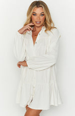- White Tiered Long Sleeve Dress
