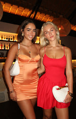 The Trouble Orange Mini Dress is your go-to for making a serious statement. Throw on some nude heels and minimalist jewelry for a sleek vibe, or amp it up with metallic accessories when you're ready to own the night. Either way, this dress will have you turning heads and owning the moment.