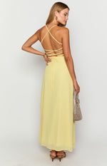 Radiate elegance and charm in our Arabelle Yellow Chiffon Lace-Up Maxi Dress - the perfect statement piece for weddings, proms, or formal celebrations! The soft chiffon fabric flows beautifully with every step, while the gathered bust and lace-up back add a delicate, romantic touch. Style it with gold jewellery, strappy heels, and a soft clutch for a graceful, sunshine-soaked look that’s sure to turn heads.