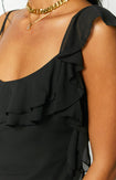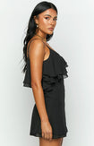 - This ruffle LBD is stunning and is perfect when pairing with gold accessories and black heels. Whether its date night, a cocktail occasion or event - this mini dress is the perfect pick!