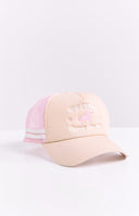 Top off your effortless weekend style with our Beginning Cream Pony Club Trucker Cap! With its embroidered design, soft cream front, and breathable pink mesh backing with white trim, it's the perfect finishing touch for laid-back days. Style with jeans and a basic tank for a relaxed off-duty look!