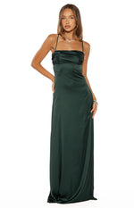 Make an impression at your next formal event in our Blaise Emerald Satin Maxi Dress. Featuring a sleek straight neckline and a sultry open back with adjustable lace-up details, this gown offers a flawless, customised fit. Pair with gold statement earrings and strappy heels for a luxurious evening look!
