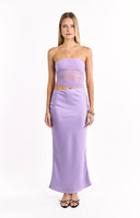 How to style: Our Elinor Black Maxi Dress is a gorgeous blend of playful elegance, perfect for semi formal occasions! The mesh bodice brings a flirty feel and is complemented by the classically classy satin maxi skirt. Style with black heels for a monochromatic fit, and finish the look with a gold necklace stack to accentuate the strapless neckline!
