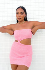 - Calling all barbie girls, this pink knit dress is the perfect party dress. It looks amazing styled with some strappy heels and gold jewellery.