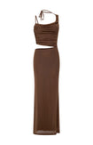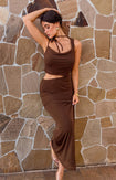 - Brown Mesh Maxi Dress