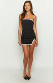 - How stunning is our black contrast strapless mini dress? It is oh so perfect for parties and cocktail nights. We love this piece paired with black heels and gold jewellery for a high fashion, luxury look.