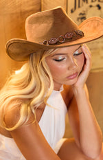 Lexi Tan Suedette PU Trim Western Hat