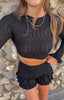 - Black Knit Long Sleeve Crop Top