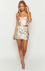 Milliana White Satin Roma Print Skirt