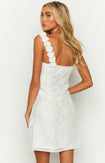 - Our elegant flower mini dress is to die for. The flower strap detailing and lace fabric is going to set you apart at your next event! Complete the look with white heels and jewellery!