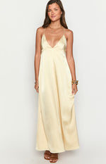 Make a breathtaking entrance in our Nakita Yellow Maxi Dress, a stunning option for prom, a formal, or an elegant wedding guest look. This gown is designed to impress with a deep V-neckline and a dramatic open back, finished with delicate lace-up detailing. Complement this show-stopping piece with simple heels and delicate jewellery to complete your look.