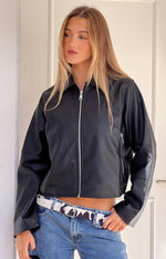 Black PU Cropped Jacket
