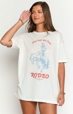 Designed to be baggy and fashionable at the same time, meet the First Rodeo White Oversized Tee by The Laundry Room! The stretchy jersey fabric and oversized fit makes for the perfect everyday tee that will keep you confortable all day long! Keep it simple with a denim skirt and some sneakers or go all out with cowboy boots and a cowboy hat for your next rodeo!